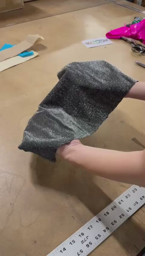 The woven silver thread catches light from every angle without the weight of sequins. Slightly textured (true metallic fiber feel), yet comfortable against the skin, this stretch sparkle bodysuit moves with you—never against you.